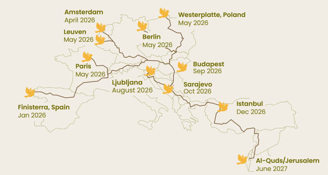 The first departure took place in Spain on February 1. There will be a departure from Paris on May 1, from Amsterdam on April 25, and from Berlin on May 18. A first meeting point is planned in Lausanne on May 27. Groups from European countries will meet in Budapest in September 2026 to continue together via Turkey to Jerusalem.